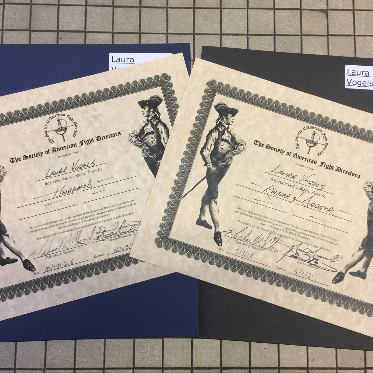 Wooohoo! I passed my re-certification in Unarmed & Rapier and Dagger. I've been super lucky to have gotten an invitation to David J. Brimmer and Dan O'Driscoll's Stage Combat classes and I've had the best time being beaten to pulp! They've certainly kicked my arse- very safely, of course. I'm excited to keep honing my skills and I couldn't have had more knowledgable teachers.
